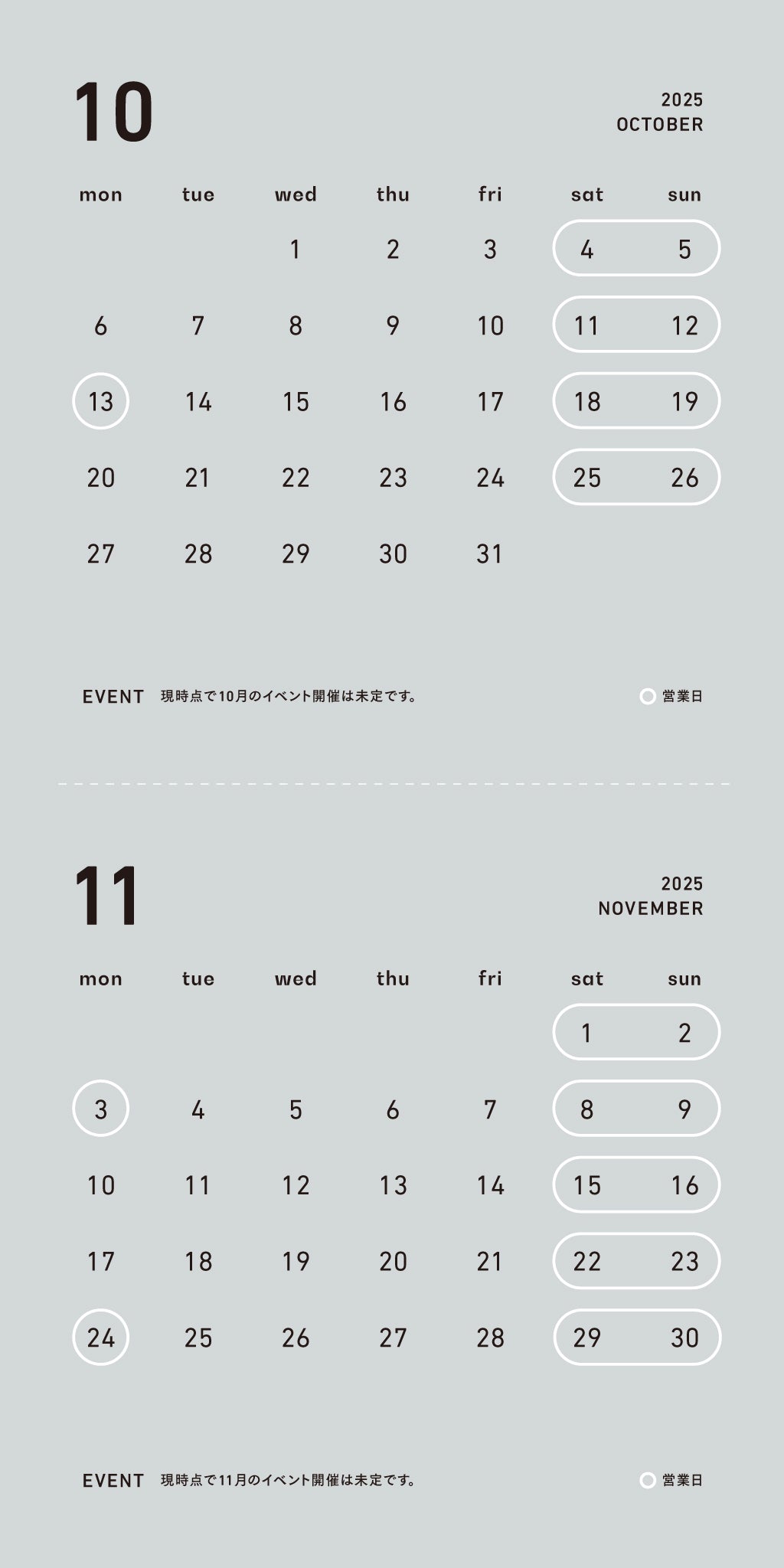 HOME > #CATEGORY:営業カレンダー